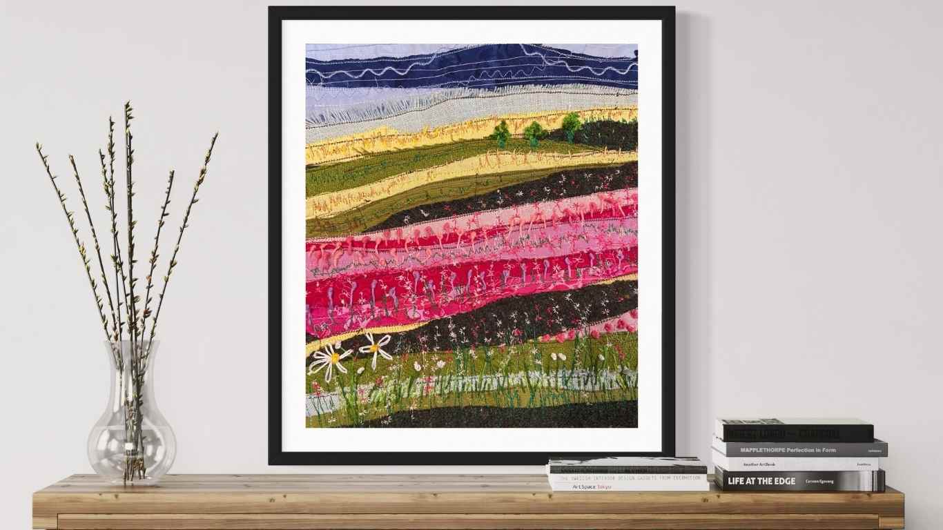 Is é an chuid is luachmhaire de mo lá ná an t-am a chaithim le mo chliaint. Is breá liom cabhrú le duine píosa críochnaithe a roghnú a labhraíonn leo, ach baineann mo chroí i ndáiríre le coimisiúin chuimhneacháin. Cibé acu atáim ag cur píosa d’éadaí duine muinteartha isteach nó ag fuáil tírdhreacha chun comóradh a dhéanamh ar imeacht a d’athraigh saol, tá na tionscadail seo thar a bheith pearsanta. Tá draíocht speisialta ag baint le suí le chéile le cliant, ag féachaint trí ábhair athláimhe, agus ag éisteacht leis na scéalta a iompraíonn siad. Le chéile, socraímid conas is fearr na cuimhní cinn sin a “fhuáil” i bpíosa ealaíne inláimhsithe.