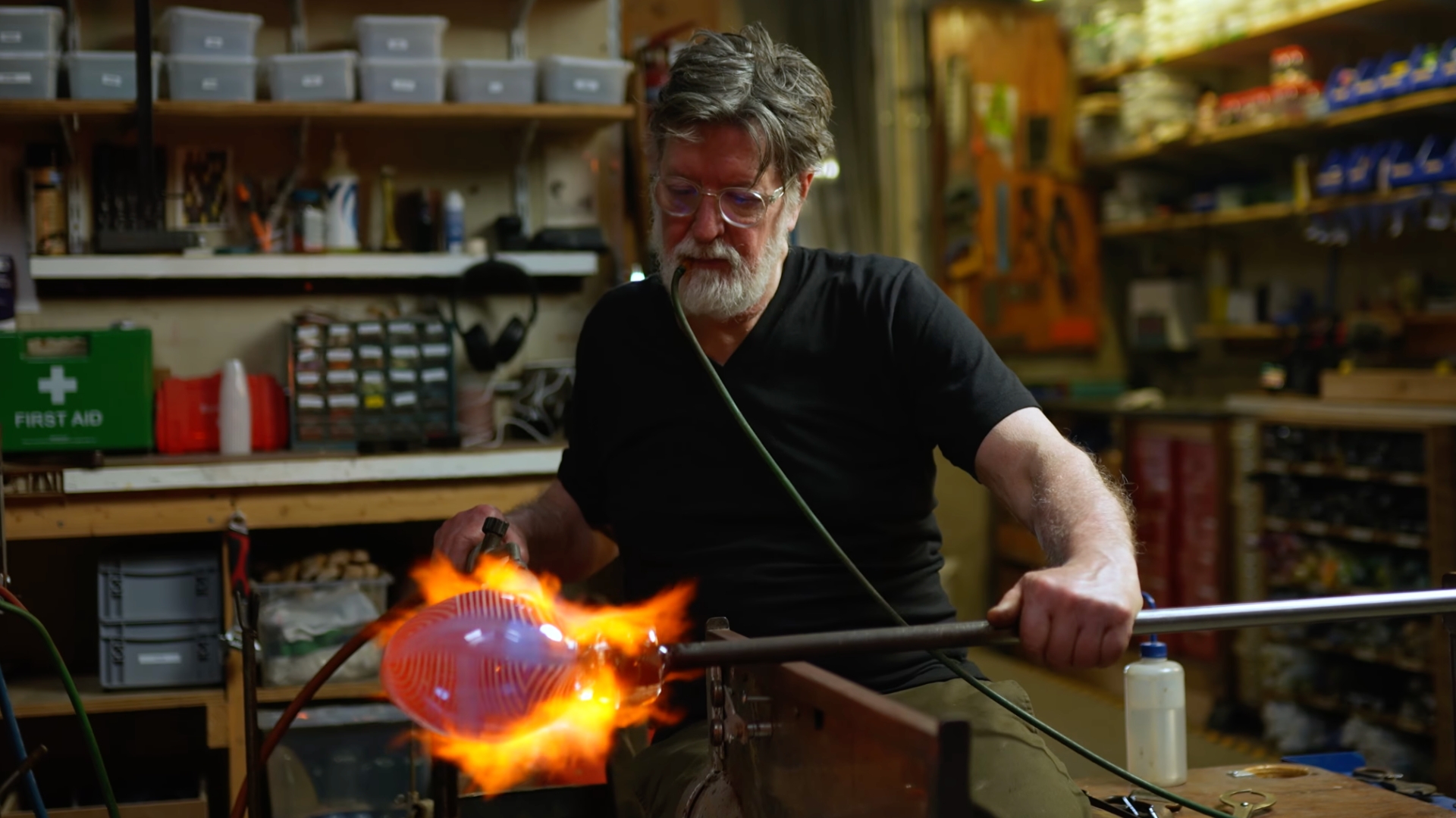The David Shaw-Smith Legacy Award provided the resources for me to develop a new body of work in the studio that explores colour and pattern in blown glass forms. The process of formulating and melting coloured glasses, and then exploring different methods of generating patterns with those glasses, are all based on traditional glassblowing practices that are rarely used in a small studio setting.