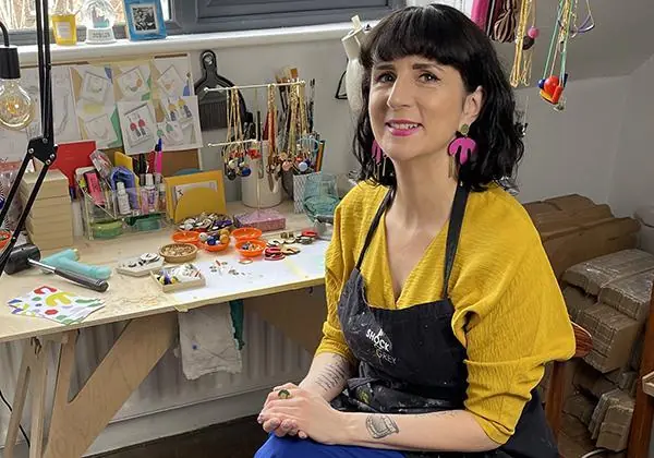 Sarah Carroll Kelly is the woman behind Shock of Grey. She is a jewellery maker and DCCI member based in Kilmainham, Dublin. Sarah’s work is bold and unique, she creates handcrafted statement jewellery that is wearable art.
