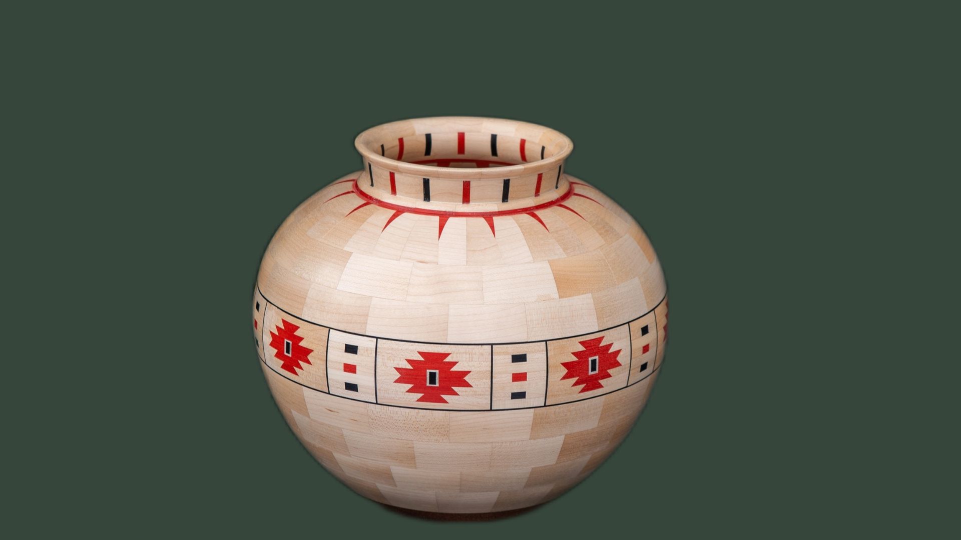 Segmented woodturning is the process of joining different coloured woods at various angles and sizes to form a variety of patterns and designs on the finished product. The amount of segments in any one piece can vary from 100 to over 1000 depending on the size and design. From design to completion some pieces may take several months. They are then buffed to a very high lustre and polished to a fine sheen. I never varnish or lacquer my work. Any product I complete can be rebuffed or repolished at any time. I mostly use Irish hardwoods. If a piece needs variety and colour I use African and South American hardwoods. This often includes the use of African blackwood and South American purple heart. All designs can be seen from both the inside and outside of the piece.