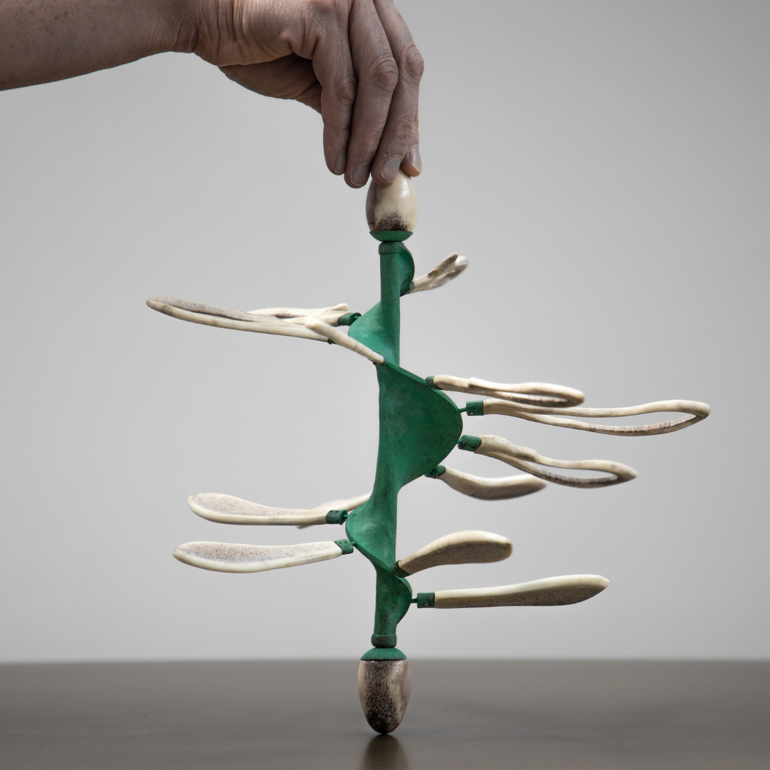 Provoked by a sense of complicity in the destruction of nature to create luxury goods her practice has evolved in a new direction from primarily designing works in precious metals. Using traditional silversmithing technique Eva develops sculptural objects with functions that extend beyond purely the aesthetic.